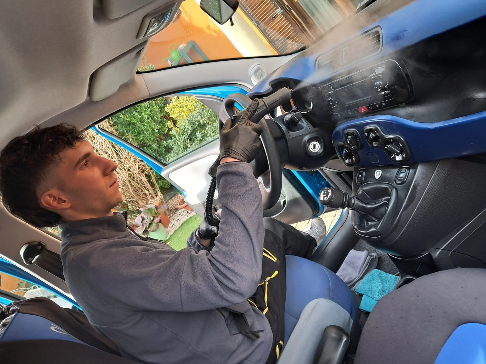 Interni: Aspirazione meticolosa, sanificazione a vapore, lavaggio sedili e smacchiatura, pulizia del cruscotto e delle plastiche con protezione anti-UV (finitura opaca, non untuosa) e pulizia professionale dei cristalli.